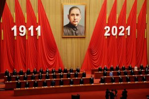 Le 9 octobre, la veille du discours de Tsai Ing-wen à l’occasion de la fête nationale de la République de Chine (dans lequel elle a essentiellement repris les éléments de sa tribune dans Foreign Affairs), le leader chinois Xi Jinping, dans un discours marquant le 110ème anniversaire de la fin de la dynastie Qing, déclare, face à un portrait géant de Sun Yat-sen (cf photo), que la « réunification » avec l’archipel est « historiquement » et « ethniquement » juste et nécessaire. La référence à Sun Yat-sen, fondateur de cette République de Chine qui existe encore de fait à Taïwan, qui pensait le retour de Taïwan à la Chine dans le cadre de l’opposition à l’occupation japonaise, est quelque peu ironique : cela signifierait donc Pékin considère le gouvernement démocratique de Formose comme une force d’occupation dont il faudrait « libérer » l’île.