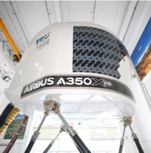 De l’extérieur, le bâtiment ne paie pas de mine, et pourtant, il renferme six simulateurs de vol de « niveau D », c’est-à-dire les plus sophistiqués : 3 pour A320, 1 pour A330, 1 pour A350, et 1 pour hélicoptère H225.