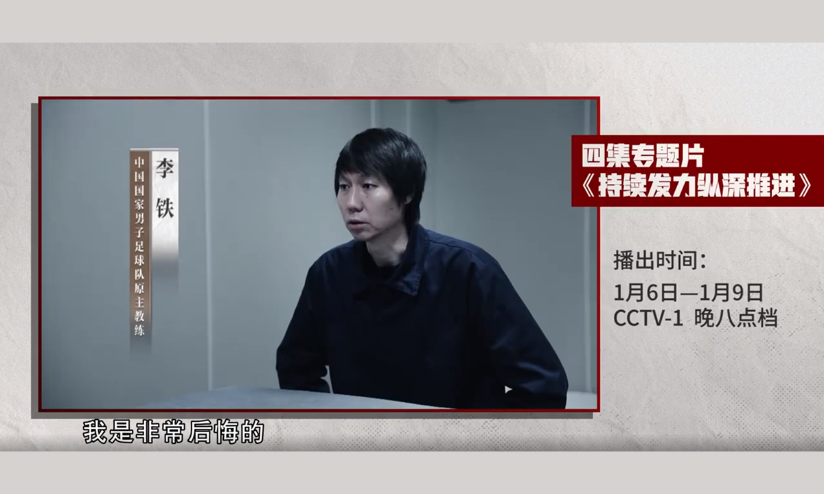 Il n’y a pas que le feuilleton « Blossoms Shanghai », signant le grand retour du réalisateur Wong Kar-wai (« In the Mood for Love »), qui suscite l’engouement des téléspectateurs. Une autre mini-série documentaire a fait une apparition remarquée sur les écrans de la CCTV en ce début d’année. Sobrement prénommée « Efforts continus et progrès approfondis », elle n’a presque rien à envier au casting de la série shanghaienne : en guise de têtes d’affiche, on retrouve entre autres, Li Zaiyong, ex-vice-gouverneur du Guizhou, Fan Yifei, ancien vice-gouverneur de la Banque Centrale ou encore Li Tie, ex-sélectionneur de l’équipe nationale masculine de football (cf photo). Derrière la caméra, pas d’éminent cinéaste, mais les inspecteurs de l’anti-corruption (CCID) qui ont mis en scène les confessions forcées des cadres qu’ils ont récemment épinglés.