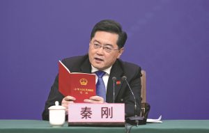 Conseiller d’Etat et ministre des Affaires étrangères : Qin Gang (à 56 ans, le plus jeune haut-gradé du gouvernement après avoir bénéficié de deux promotions successives en quelques mois – cf photo)