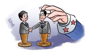 Que le rapprochement du Japon et des Philippines se fasse sous l’égide des Etats-Unis ne doit pas nous inciter à n’y voir qu’une « guerre de proxy » et à tomber dans la propagande de Pékin de « petits » pays poussés à s’opposer à la Grande Chine pour satisfaire l’avidité de « l’Empire ». Quoiqu’en disent les cartoonistes du Global Times (cf photo), le fait est que personne en Asie ne veut d’une pax sinica et que Washington semble seul à même de pouvoir prémunir les pays de la zone de la constitution d’une mare nostra aux caractéristiques chinoises.