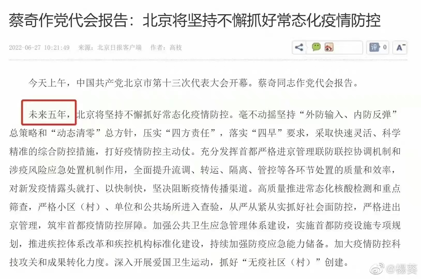 Face au tollé, toute référence « aux cinq prochaines années » a été supprimée de la toile. Tentant de désamorcer la polémique, l’ancien rédacteur en chef du Global Times, Hu Xijin, a expliqué que le manque de professionnalisme d’un journaliste – qui avait préparé à l’avance son texte sans le retoucher par la suite – était à l’origine du malentendu. « Personne n’espère que Pékin ne va vivre pendant les cinq prochaines années comme ces deux derniers mois », a-t-il ajouté. En effet, les Pékinois ont certes échappé à un confinement strict « à la mode de Shanghai », mais se sont vu imposer de lourdes restrictions pendant près de six semaines.