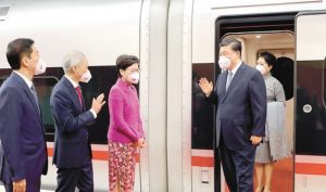 Ce n’est pas la première fois que Xi Jinping renonce à la voie des airs pour ses déplacements en Chine. En juillet 2022, il prenait le train avec son épouse Peng Liyuan de Shenzhen à Hong Kong à l’occasion du 25ème anniversaire de la rétrocession de l’ancienne colonie britannique (cf photo). Au lendemain du XXème Congrès du Parti, en octobre 2022, le Secrétaire général du PCC s’était également rendu par le rail à Yan’an, lieu emblématique de la révolution chinoise, pour un « team building » avec les membres du nouveau Comité Permanent.