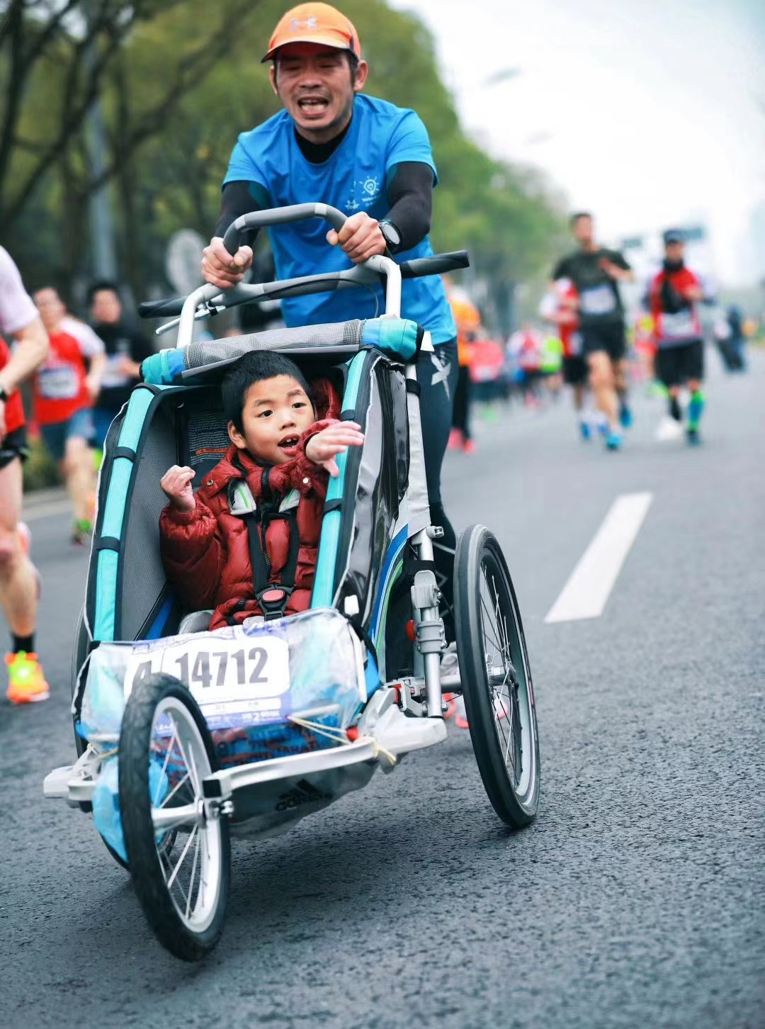 Un matin de 2015, Luo découvre sur WeChat un documentaire sur l’américain Dick Hoyt et les 1 000 marathons et triathlons effectués en poussant son fils Rick, atteint de paralysie cérébrale. C’est une révélation. Luo se met à courir, une heure par jour avant ses livraisons, suivi par une heure d’exercices. Il court le week-end, trouve un fauteuil adapté pour Bo et c’est parti ! Depuis 2015, père et fils, surnommés la « team Hoyt chinoise », ont participé à plus de 50 marathons, souvent pour lever des fonds en faveur d’une meilleure prise en charge des autistes en Chine.